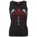 Débardeur femme à guitare crane ailé sur roses