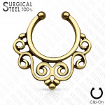 Ce faux piercing septum d'une sobriété exemplaire est parcouru de superbes nuances cuivrées, dorées, argentées ou noires qui lui confèrent un charme unique.