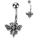 Une pyramide d'hexagones dessine la superbe croix qui décore avec originalité ce piercing nombril aux reflets argentés.