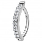 La barre courbée du piercing et la boule de serrage éclairé d'un cristal sont en acier chirurgical aux reflets argentés.