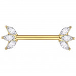 Piercing téton à arc cuivré fleuri et étoile strass